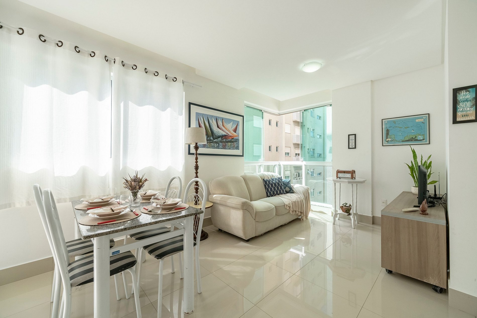 • OBS.: As duas suítes possuem cortinas com blackout. Na sala e na cozinha há cortinas comuns.