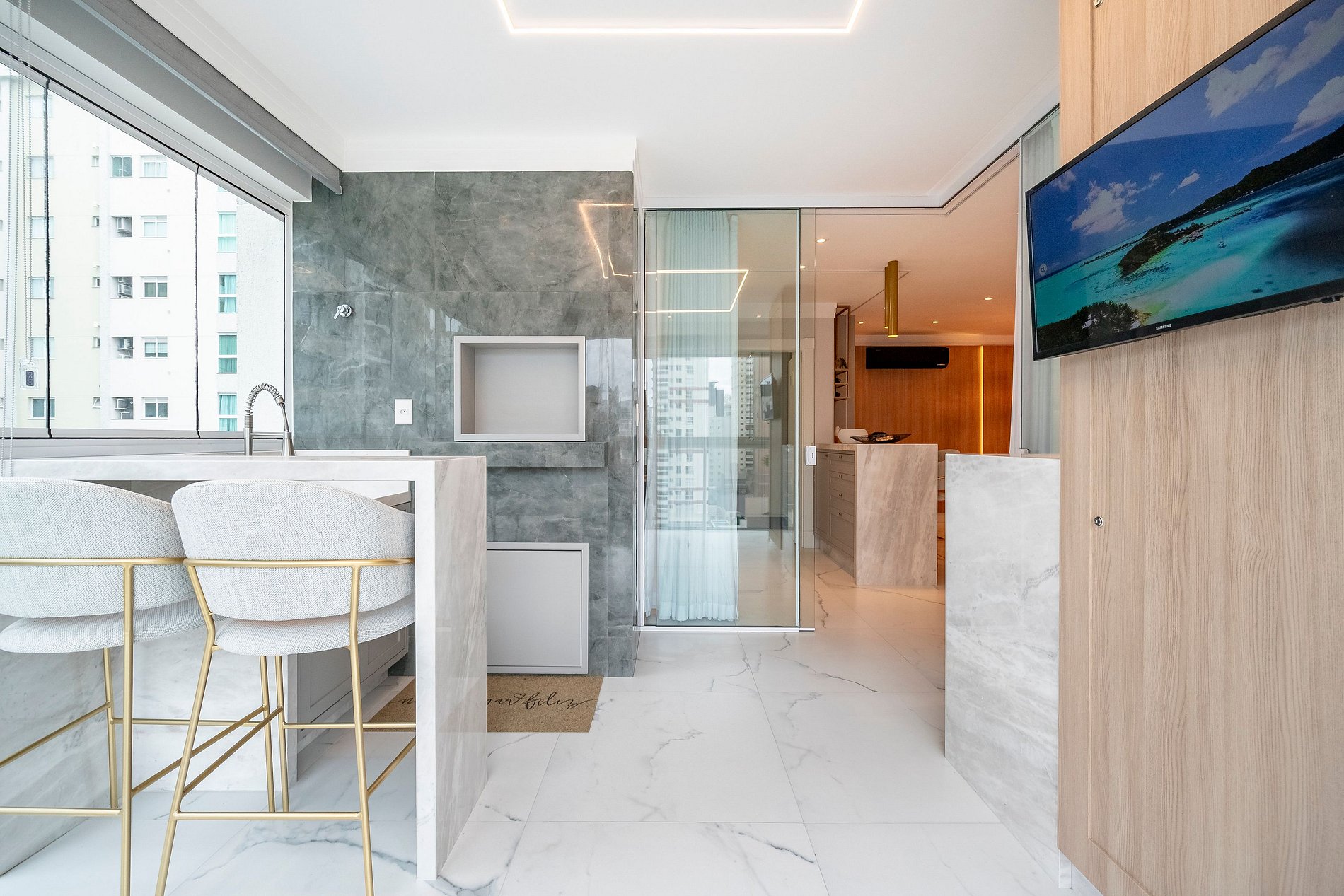 Imagine colocar sua música preferida para tocar e brindar com um bom vinho na sacada climatizada, apreciando a vista encantadora da cidade de Itapema. Este apartamento de alto padrão foi desenhado para quem valoriza conforto e estilo: 3 suítes climatizadas, ambientes integrados, sala de jantar com mini adega, e uma sacada gourmet de tirar o fôlego, com churrasqueira, cervejeira, Smart TV e vista espetacular. Sofisticação em cada detalhe, feita sob medida para momentos inesquecíveis.
