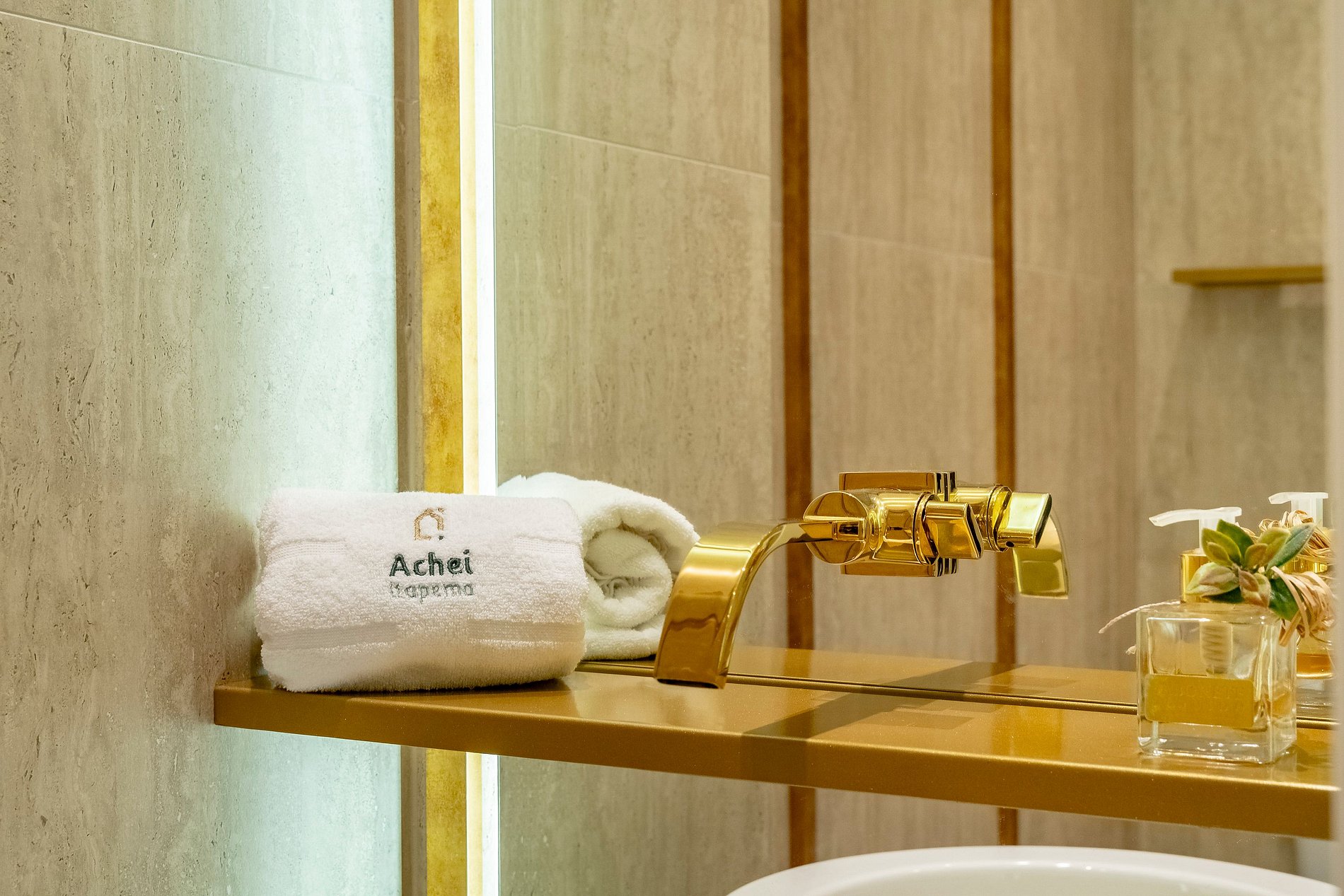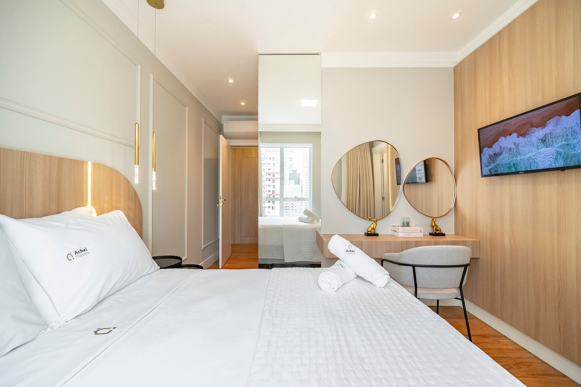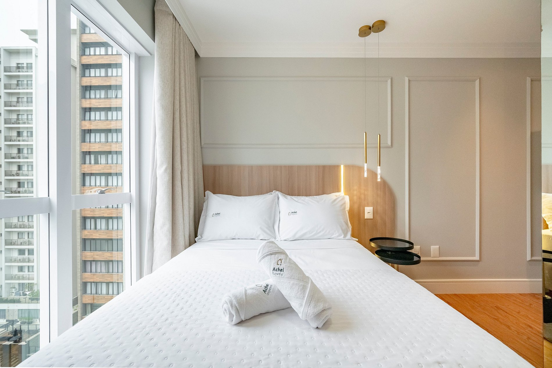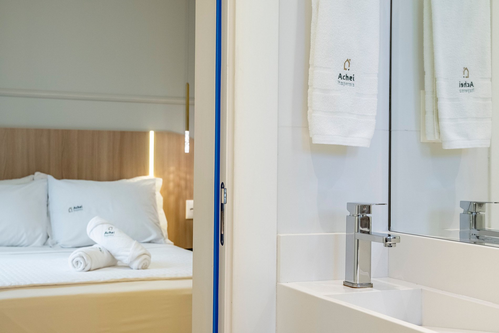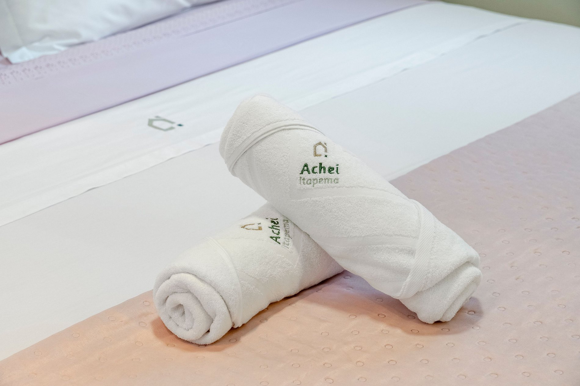 Na Achei Itapema, fornecemos toalhas de banho, rosto e piso para a comodidade dos hóspedes. São toalhas hoteleiras, confeccionadas especialmente, bordadas e de alto custo, pensadas para proporcionar uma excelente experiência durante a estadia.