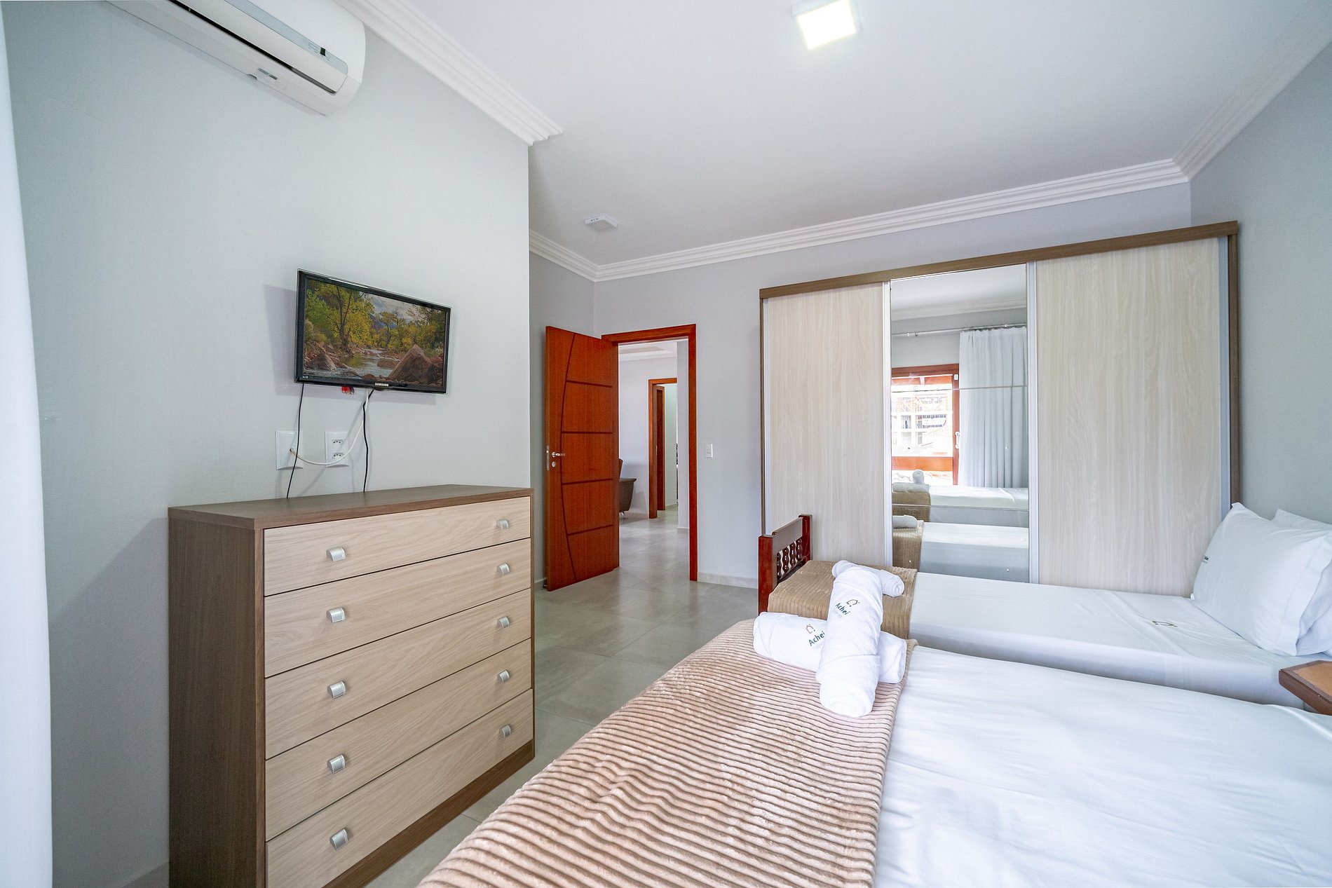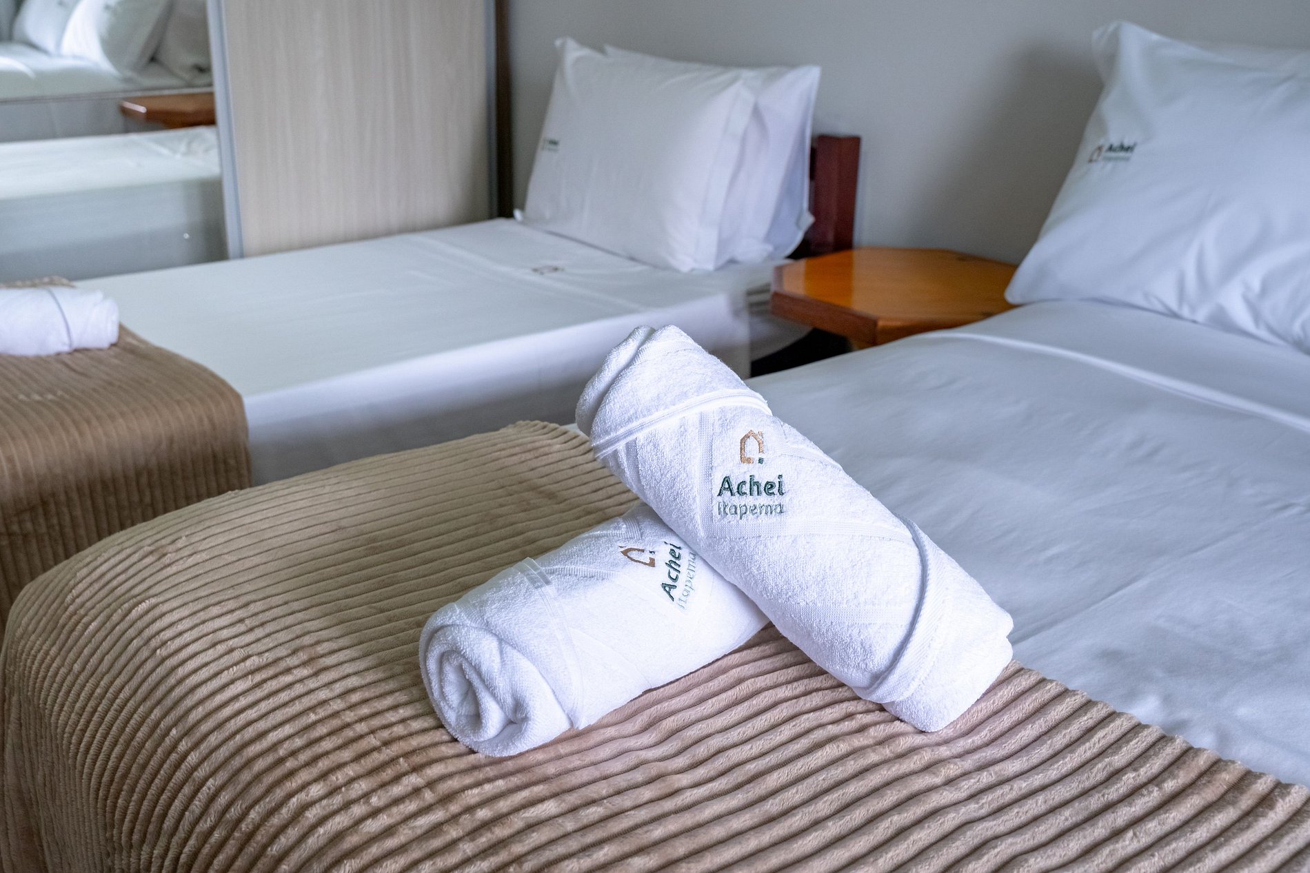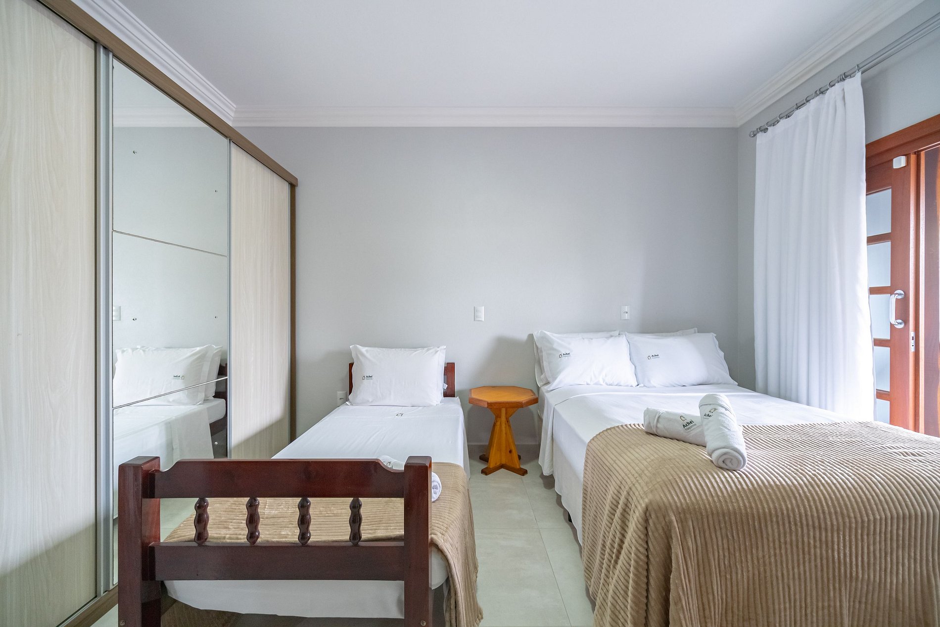 - Roupas de cama e banho: fornecidas pela Achei Itapema, organizadas de acordo com o número de hóspedes da reserva.