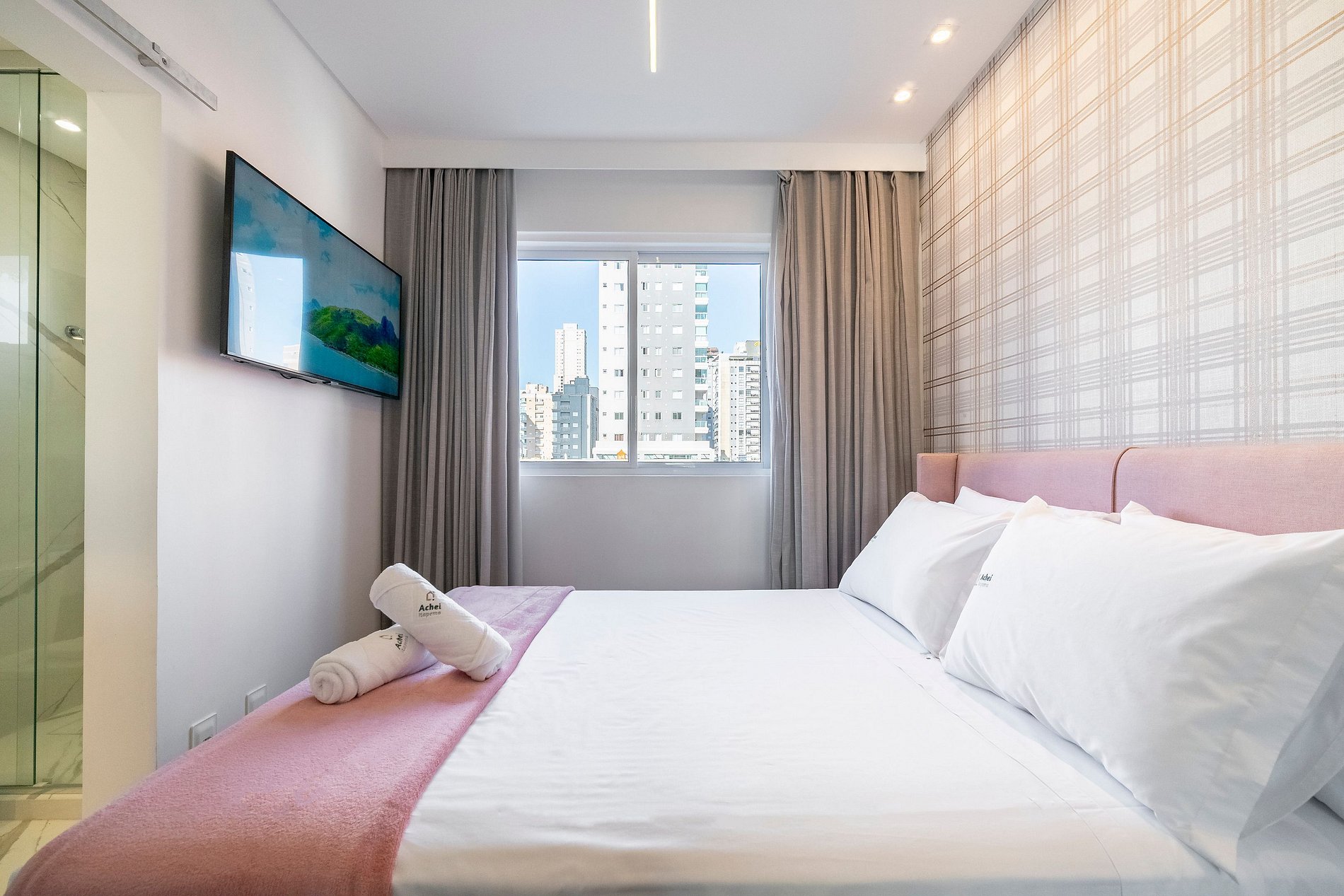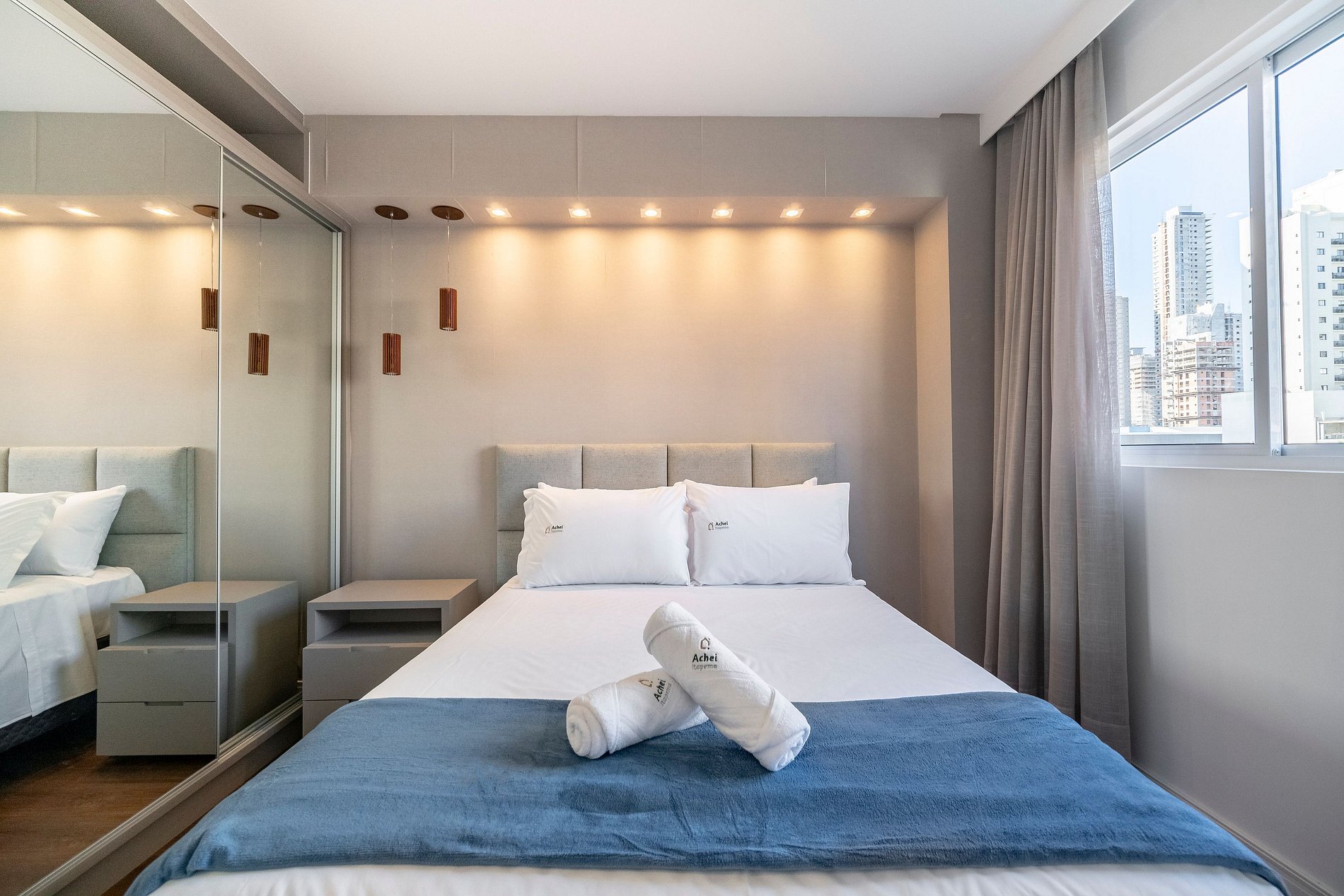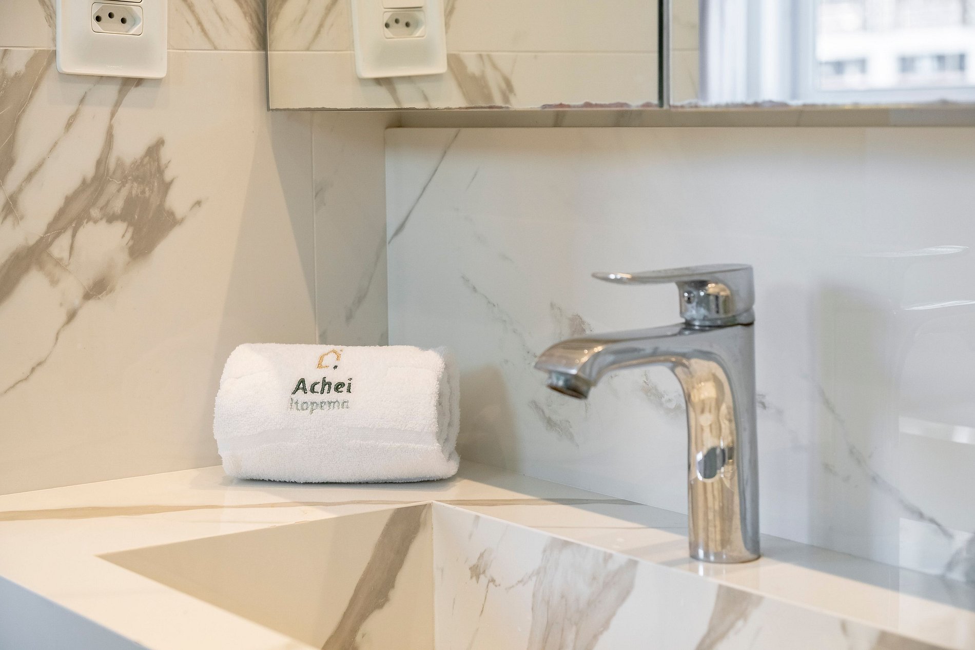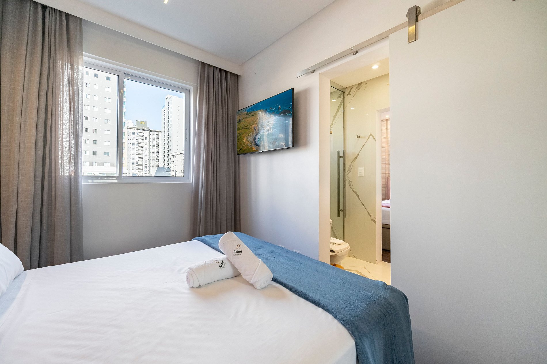 Na Achei Itapema, fornecemos toalhas de banho, rosto e piso para a comodidade dos hóspedes. São toalhas hoteleiras, confeccionadas especialmente, bordadas e de alto custo, pensadas para proporcionar uma excelente experiência durante a estadia.