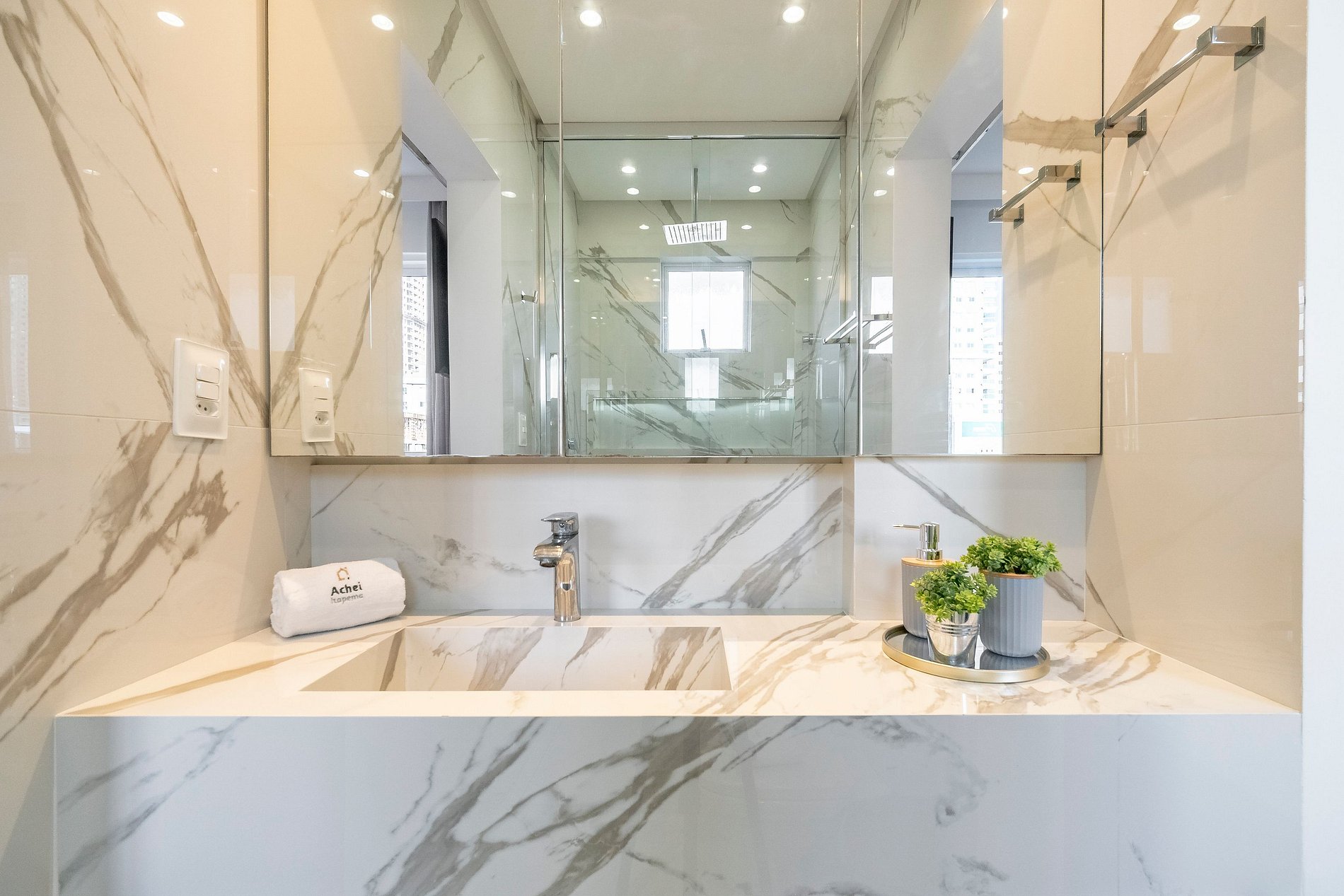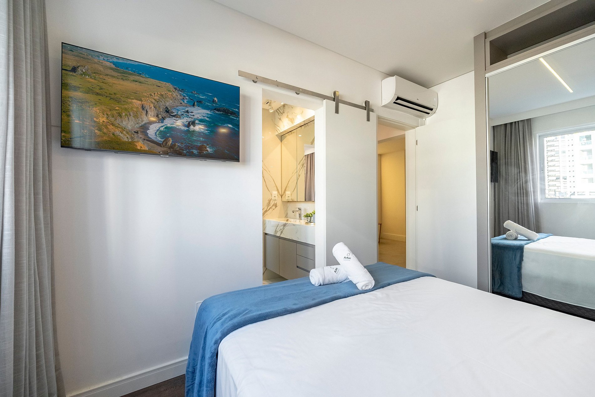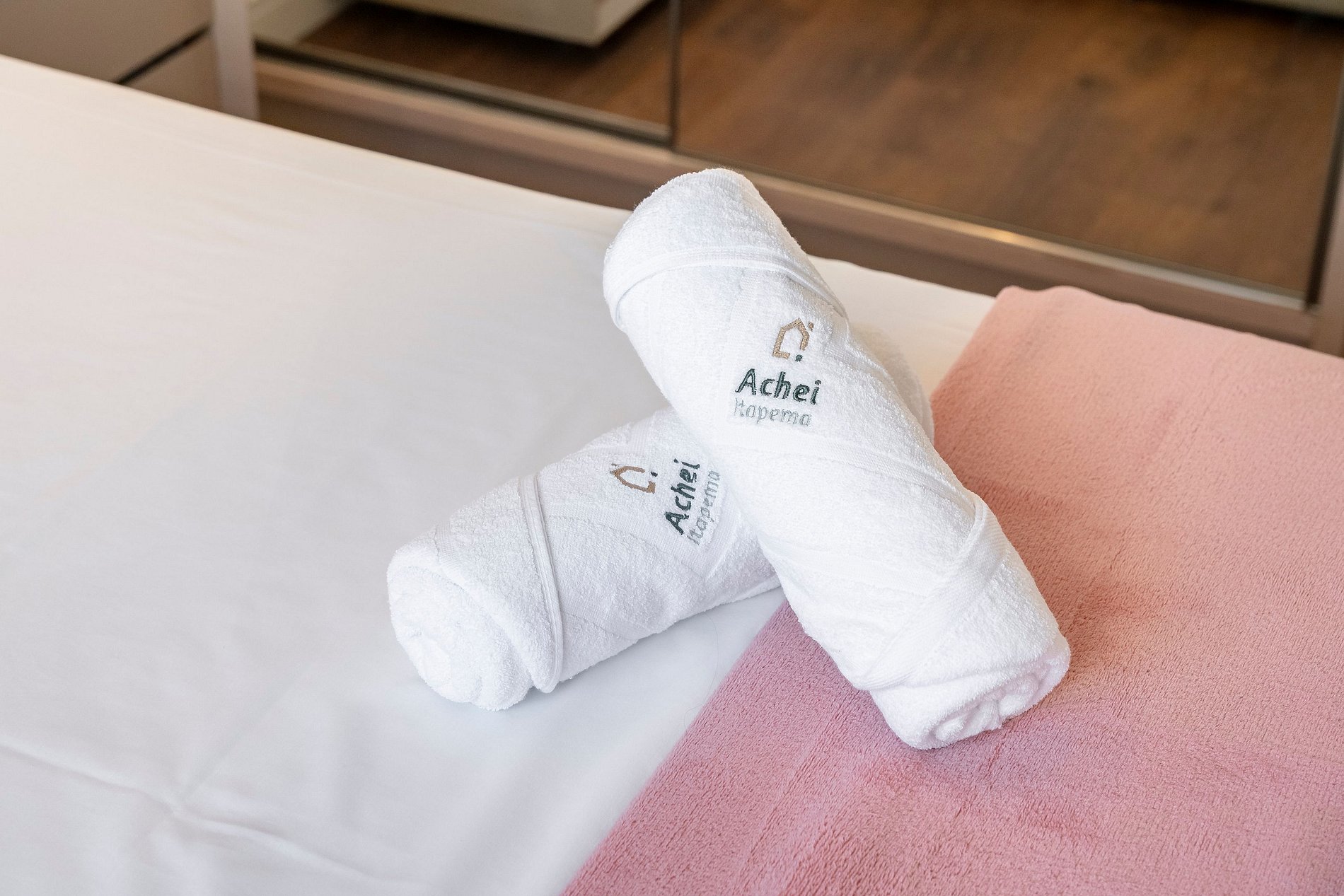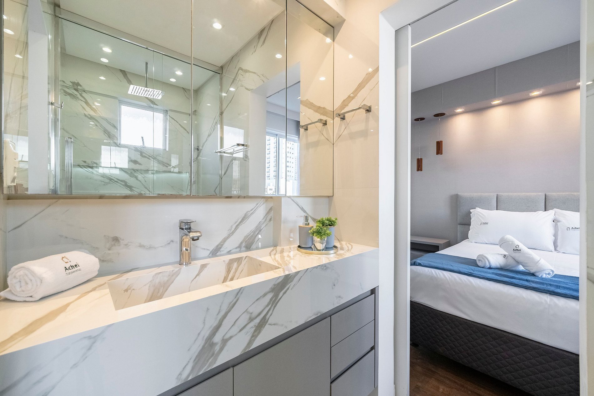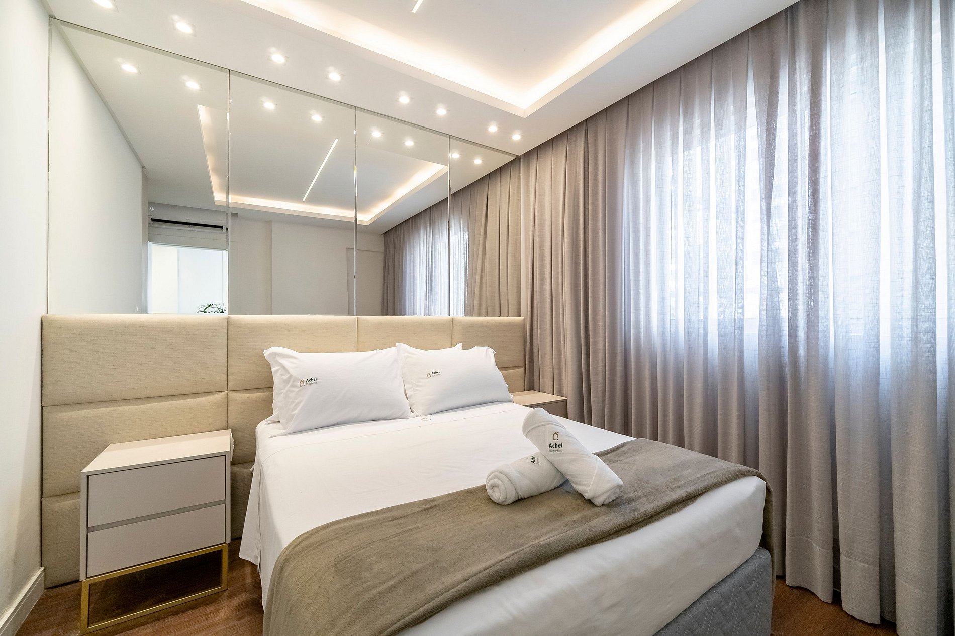 Na Achei Itapema, fornecemos toalhas de banho, rosto e piso para a comodidade dos hóspedes. São toalhas hoteleiras, confeccionadas especialmente, bordadas e de alto custo, pensadas para proporcionar uma excelente experiência durante a estadia.