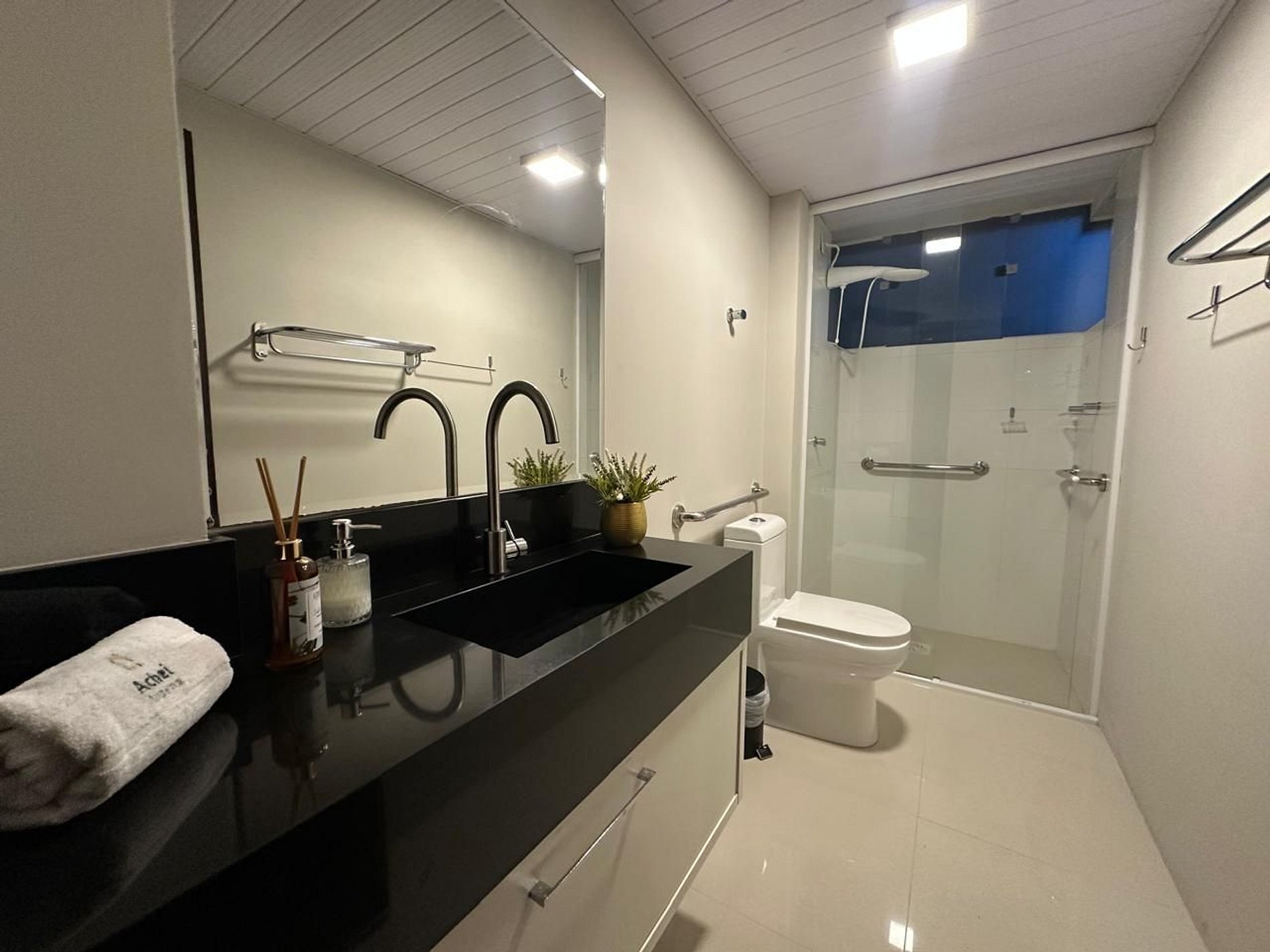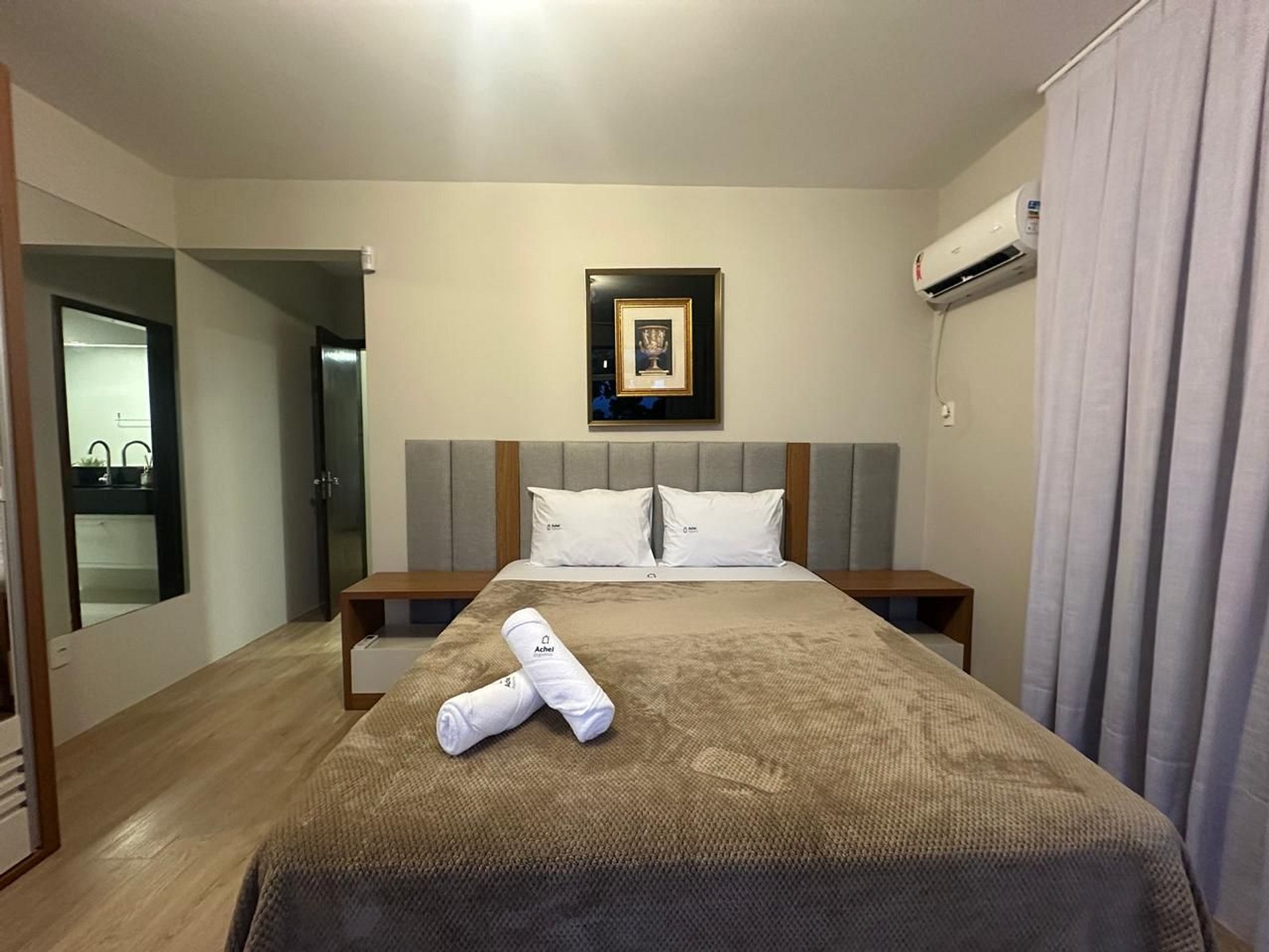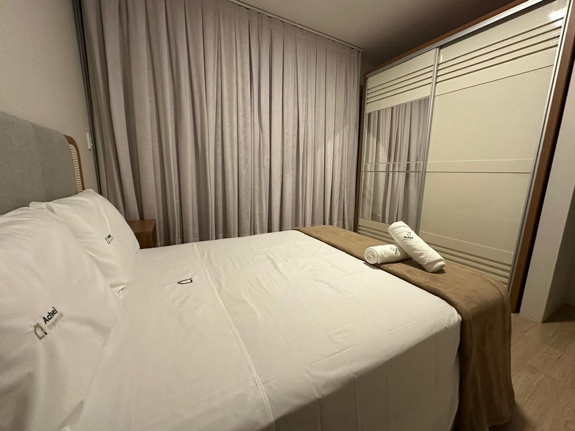 Na Achei Itapema, fornecemos toalhas de banho, rosto e piso para a comodidade dos hóspedes. São toalhas hoteleiras, confeccionadas especialmente, bordadas e de alto custo, pensadas para proporcionar uma excelente experiência durante a estadia.