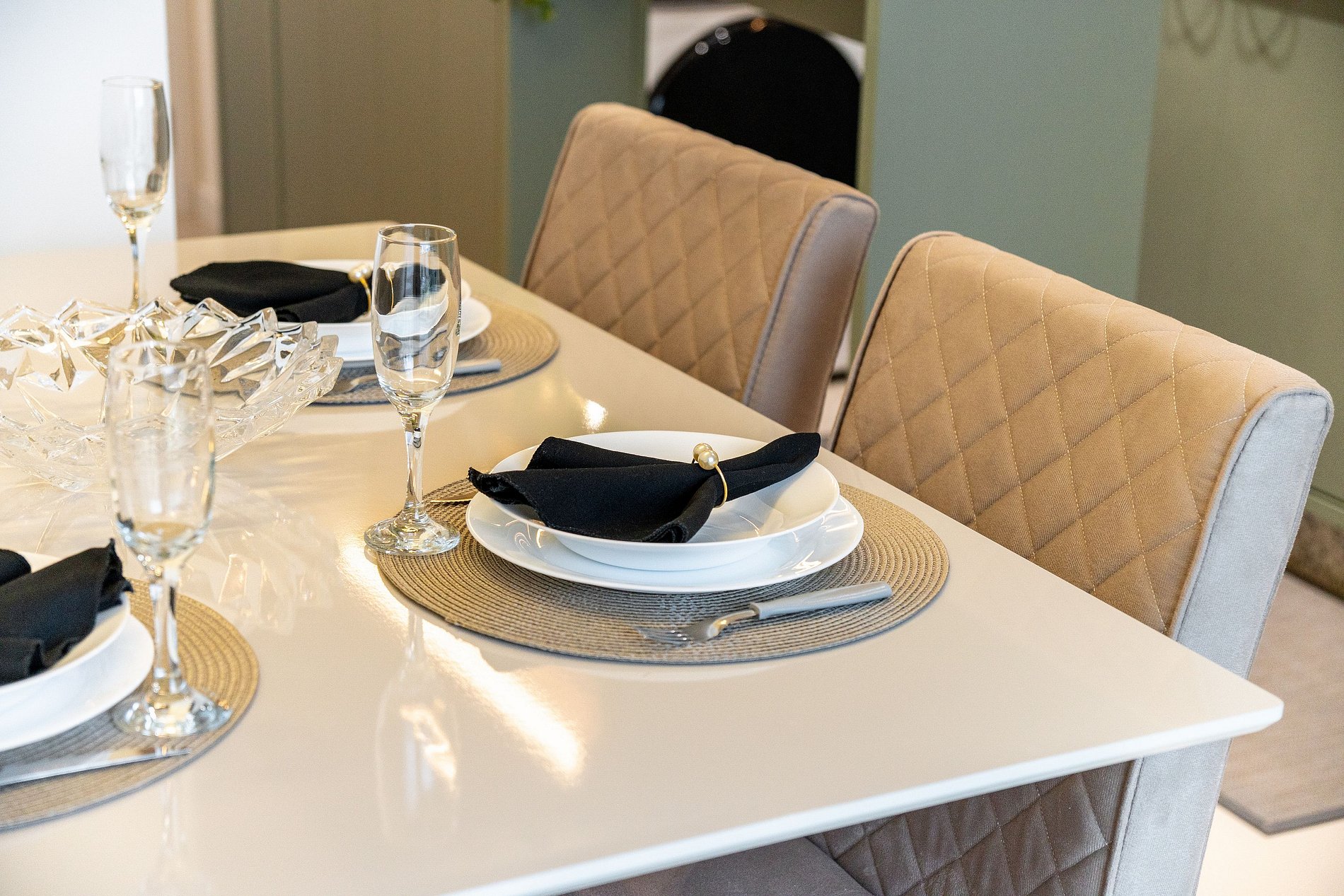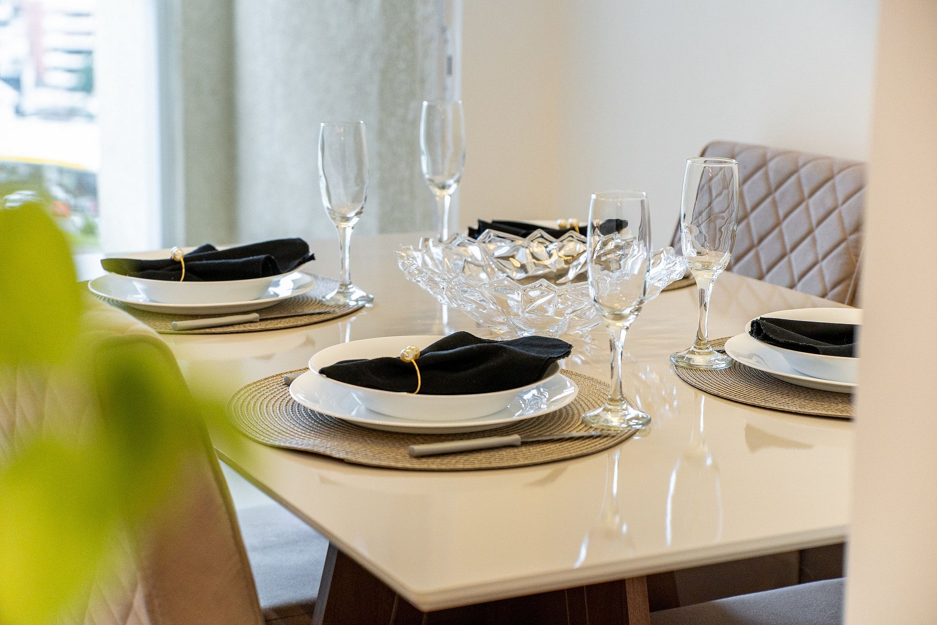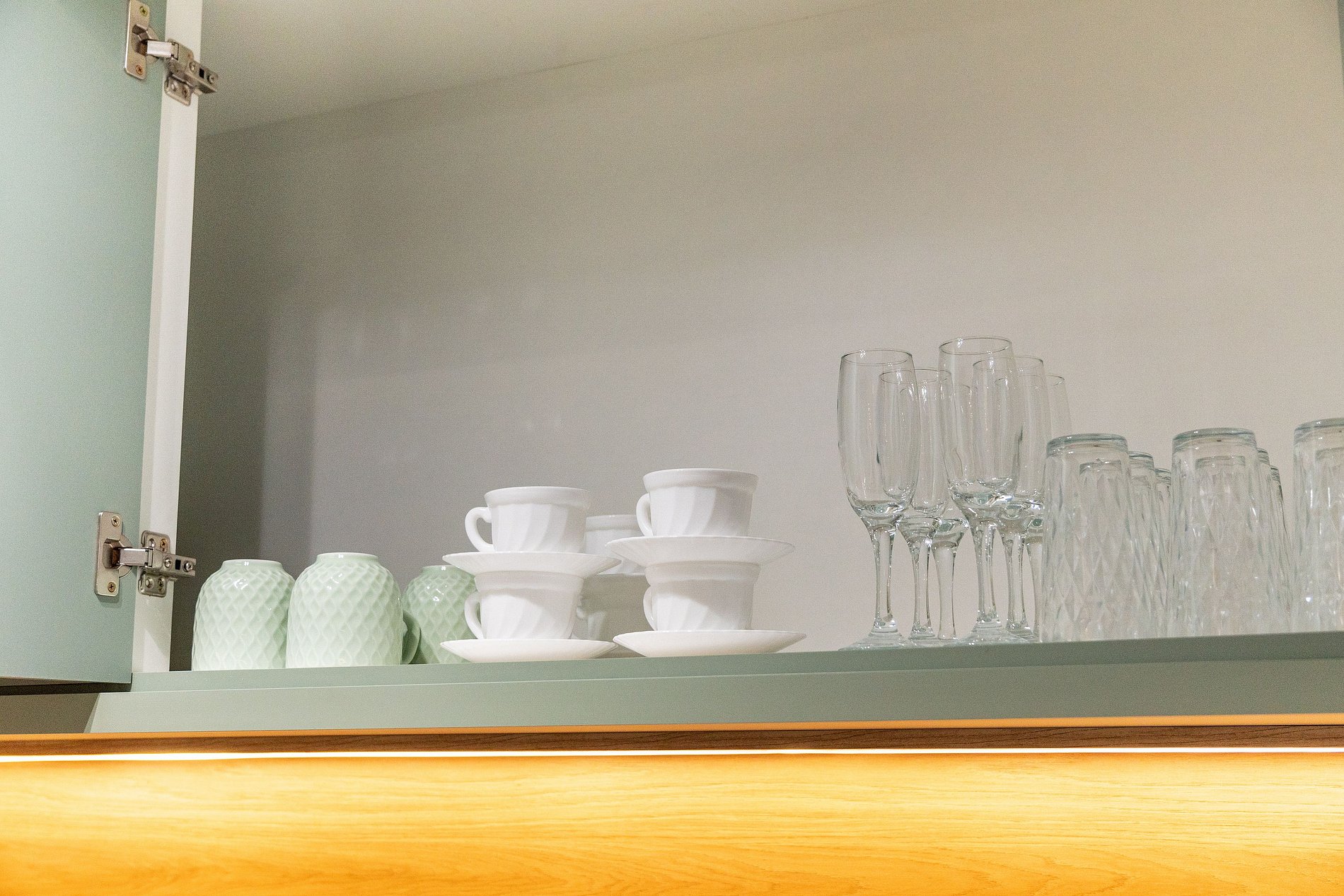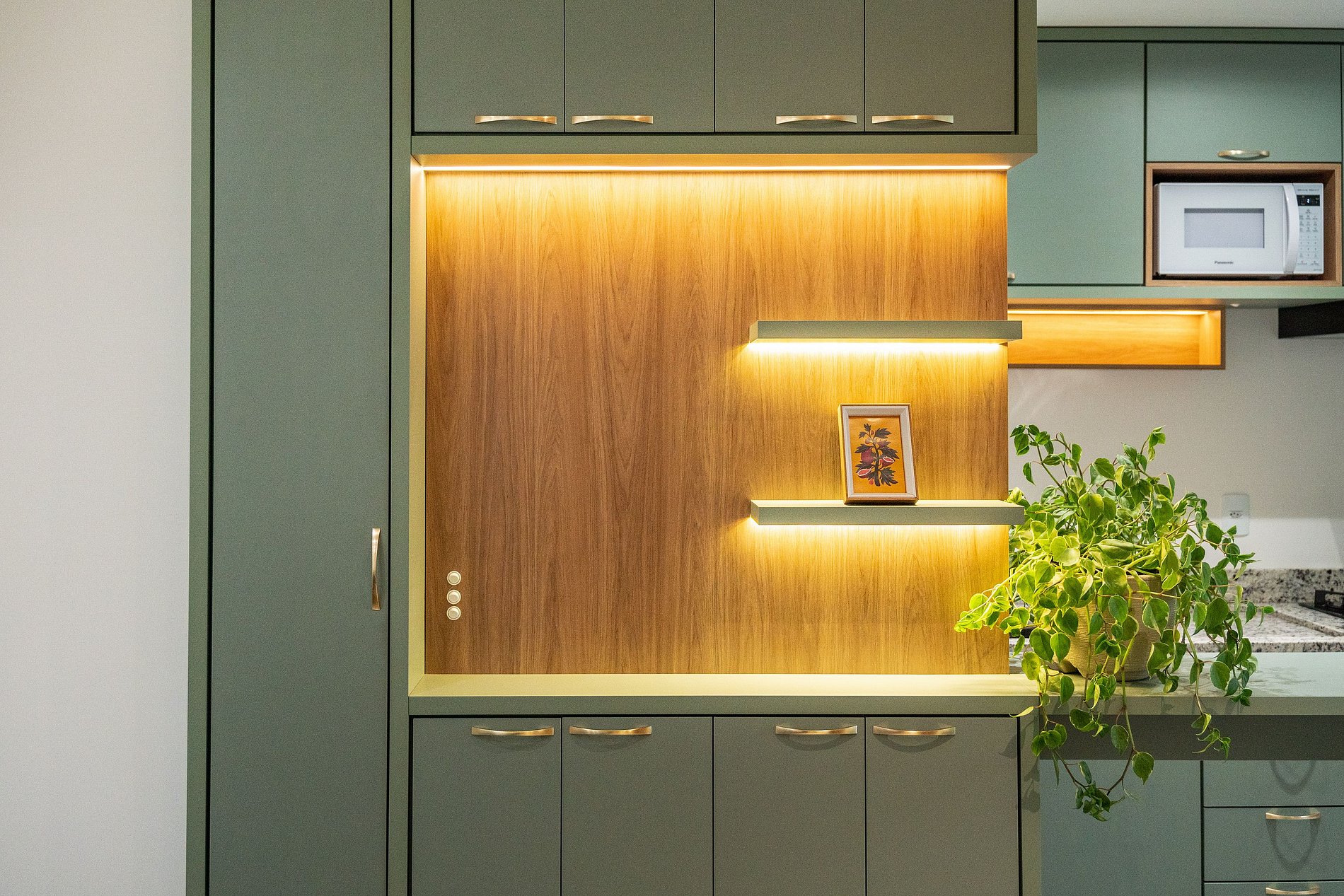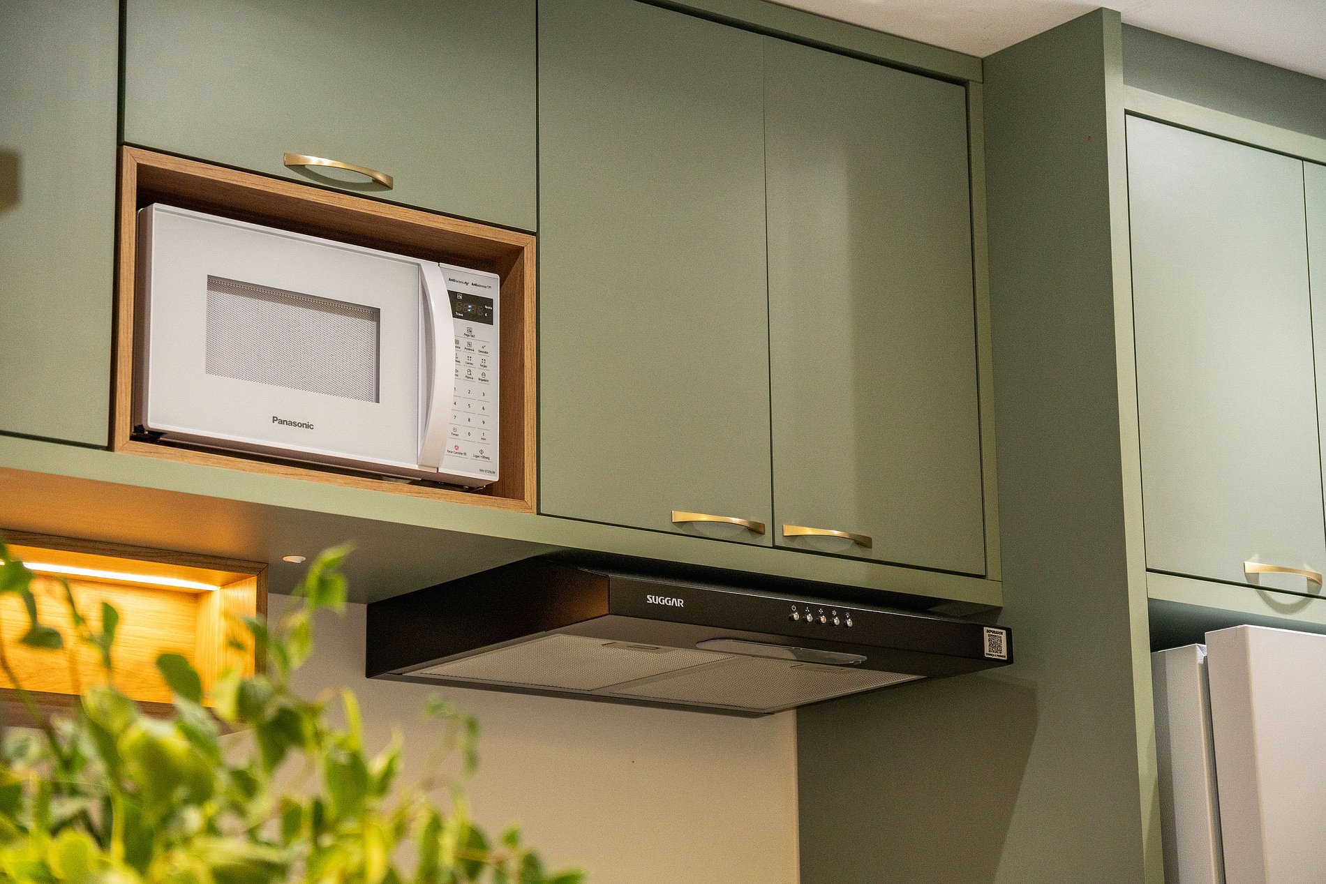 - Cozinha: geladeira, microondas, fogão, depurador, máquina de lavar e utensílios.