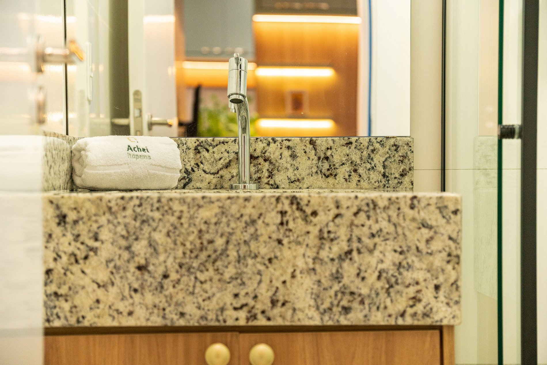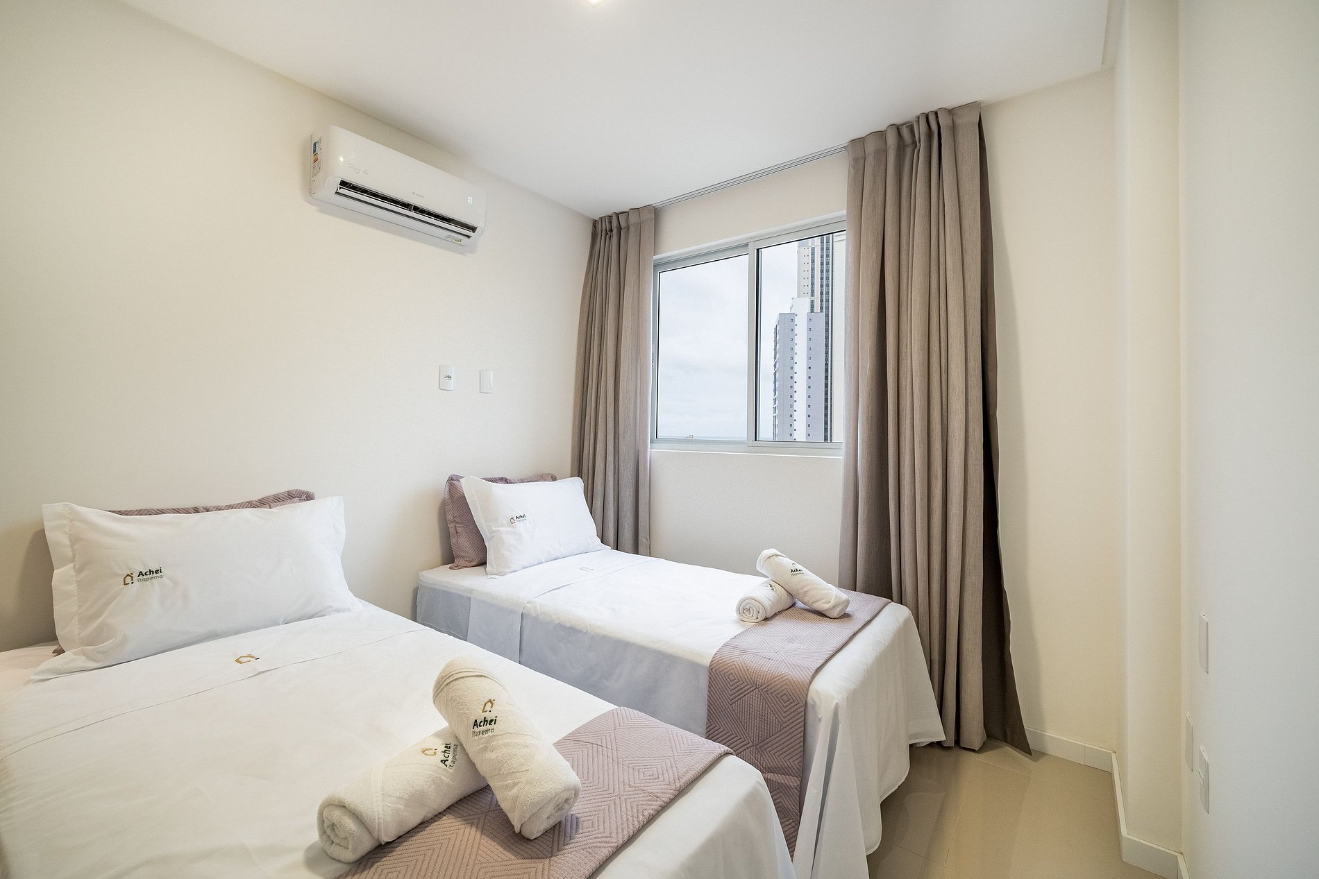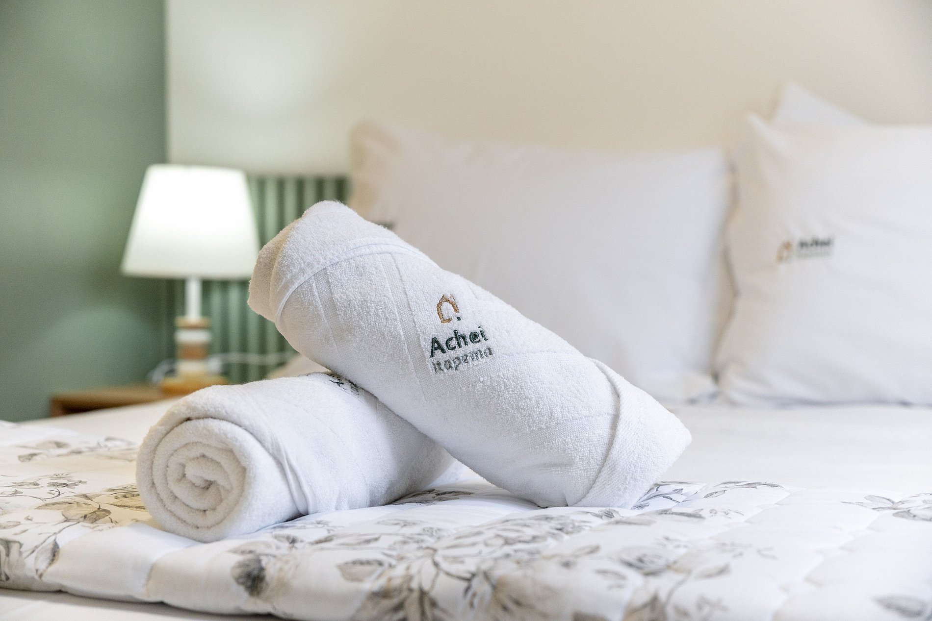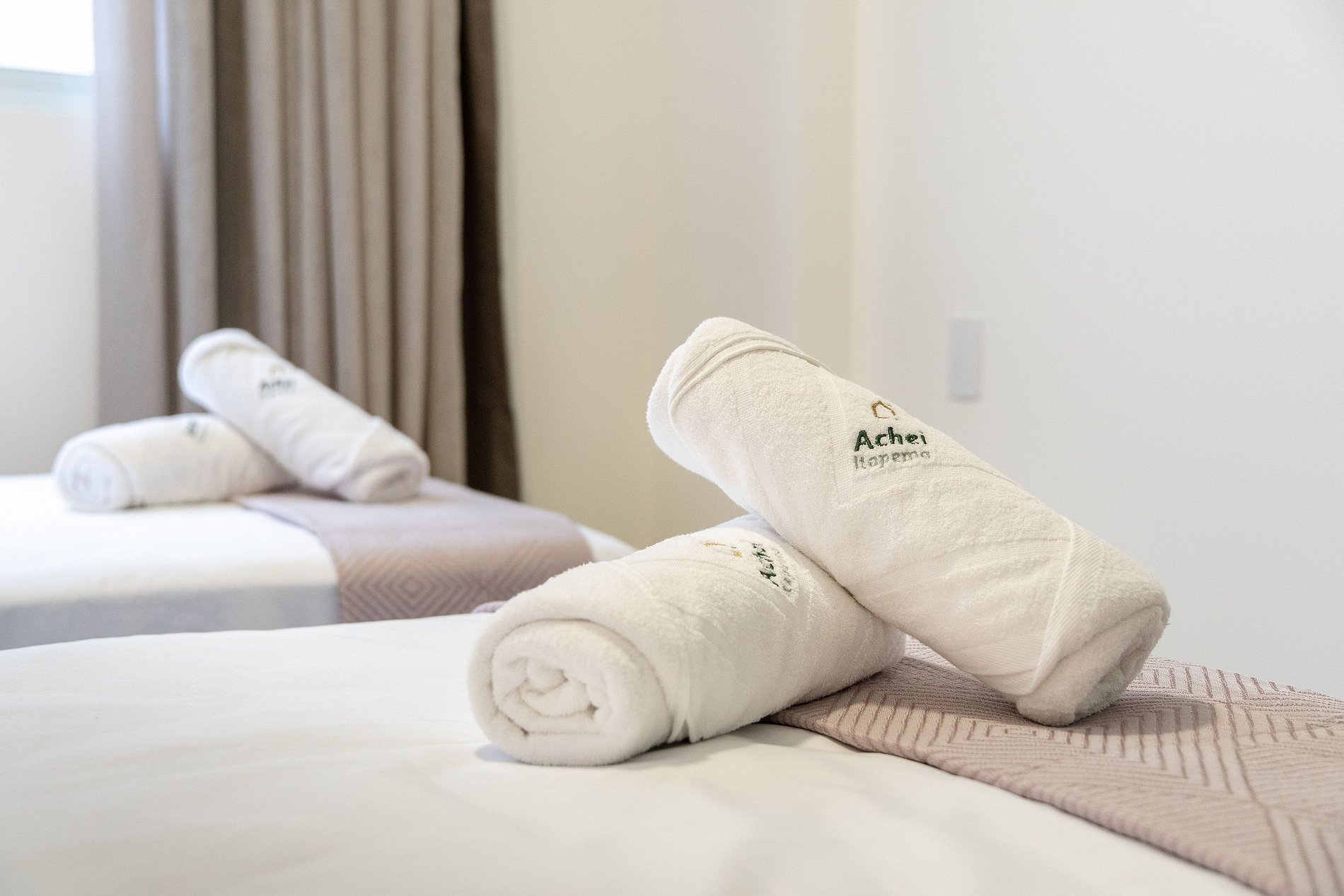 Na Achei Itapema, fornecemos toalhas de banho, rosto e piso para a comodidade dos hóspedes. São toalhas hoteleiras, confeccionadas especialmente, bordadas e de alto custo, pensadas para proporcionar uma excelente experiência durante a estadia.
