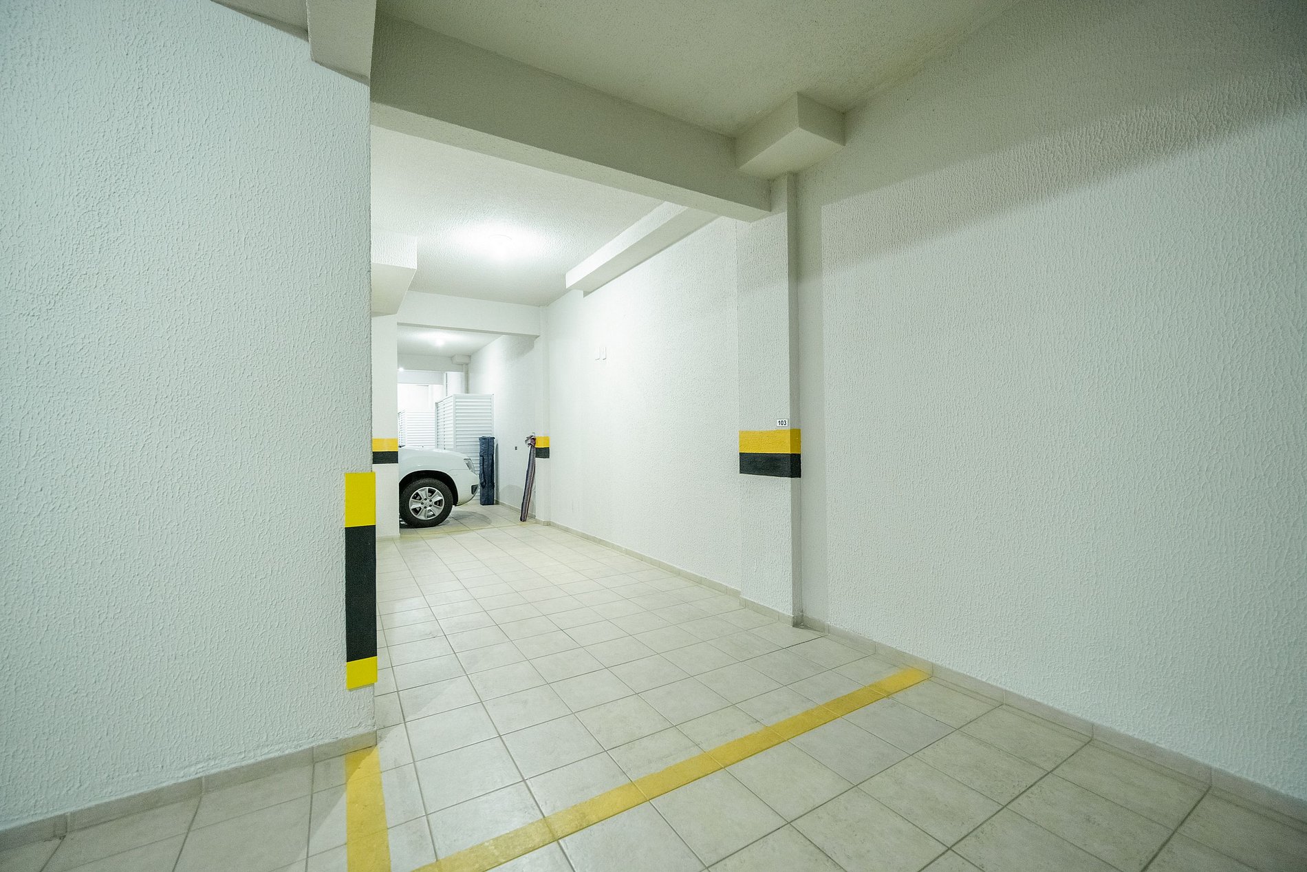 O apartamento conta com 1 vaga de garagem privativa, localizada no térreo. O espaço tem dimensões mais justas, por isso recomendamos atenção ao estacionar.