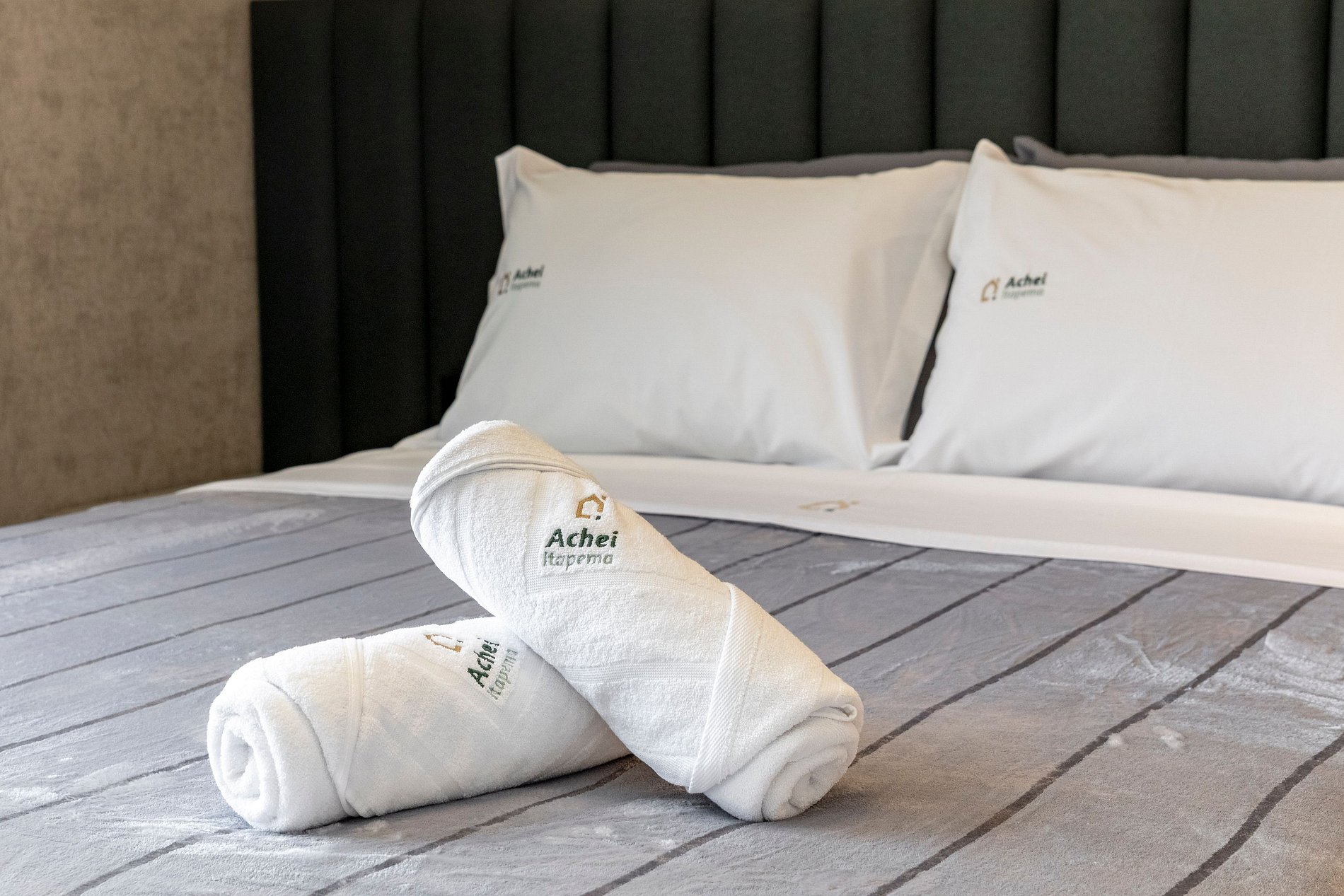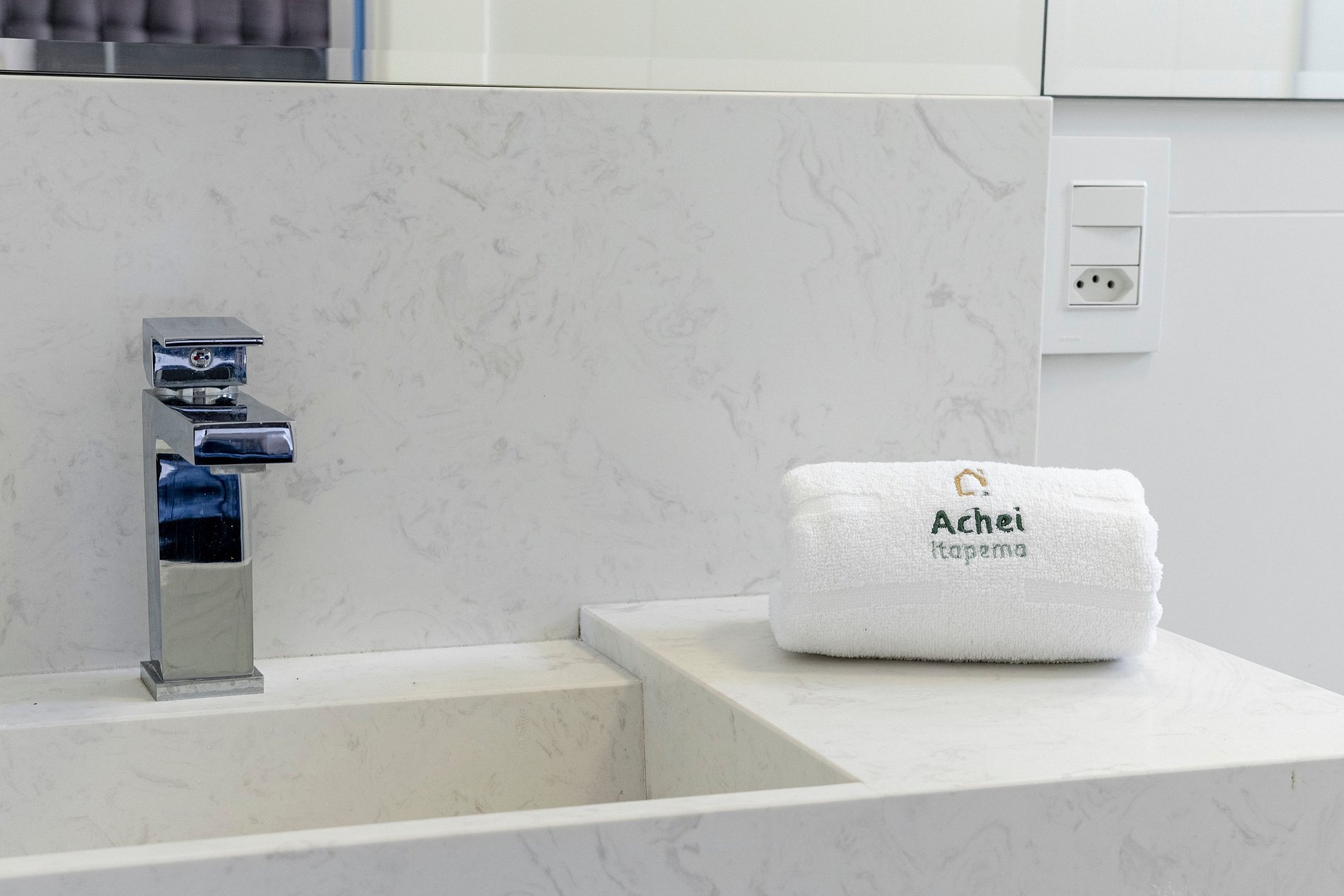 Na Achei Itapema, fornecemos toalhas de banho, rosto e piso para a comodidade dos hóspedes. São toalhas hoteleiras, confeccionadas especialmente, bordadas e de alto custo, pensadas para proporcionar uma excelente experiência durante a estadia.